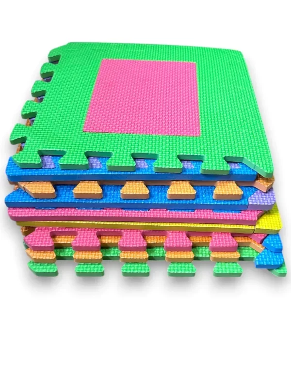 Incluye 9 piezas de 30x30 cm con formas geométricas grandes, bien visibles y fáciles de encastrar.