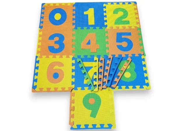 Incluye 10 piezas de 30x30 cm, cada una con un número del 0 al 9.